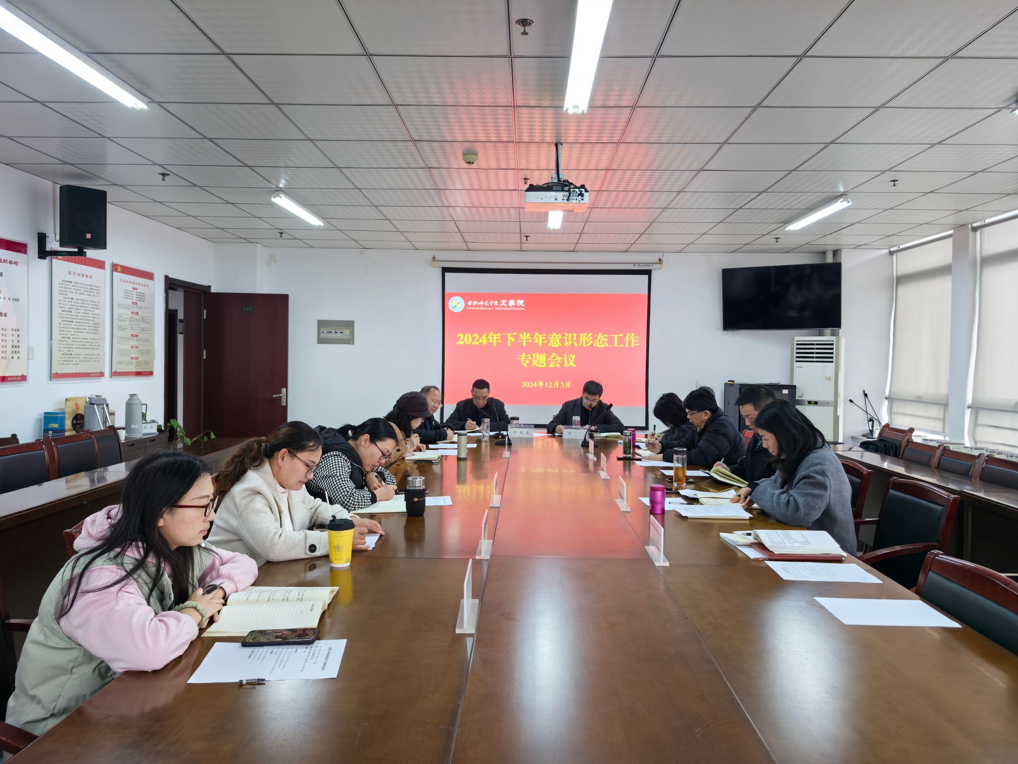 12月3日下午,太阳成集团122ccvip在行知楼802会议室召开2024 年下半年意识形态工作专题会议,公司党政班子、党支部书记、系部主任和管理人员参加会议。会议由公司党委书记许锃主持。