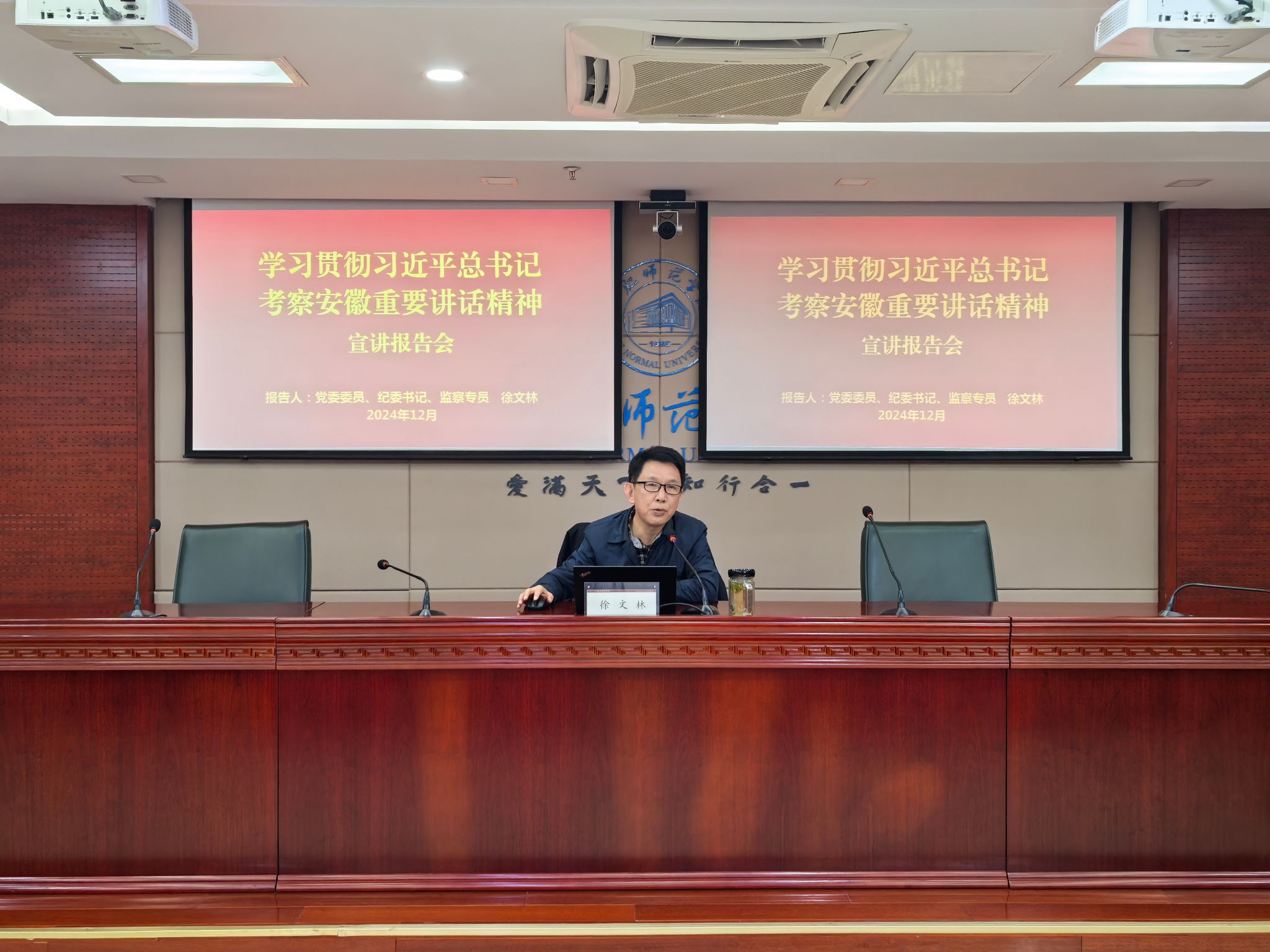 为引导广大师生深入学习宣传贯彻习近平总书记考察安徽重要讲话精神,根据公司统一安排,12月11日,公司党委委员、纪委书记、监察专员徐文林为联系单位太阳成集团122ccvip、外国语公司和生物与食品工程公司党员作习近平总书记考察安徽重要讲话精神专题宣讲。