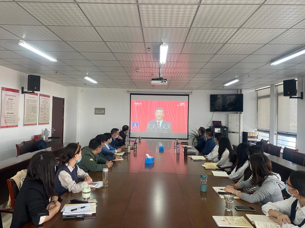 16日上午,公司党政领导班子成员、党委委员、支部书记、系所主任和支部委员在行知楼会议室集中收看党的二十大开幕会,公司全体党员通过各种形式,收听收看开幕会现场直播。