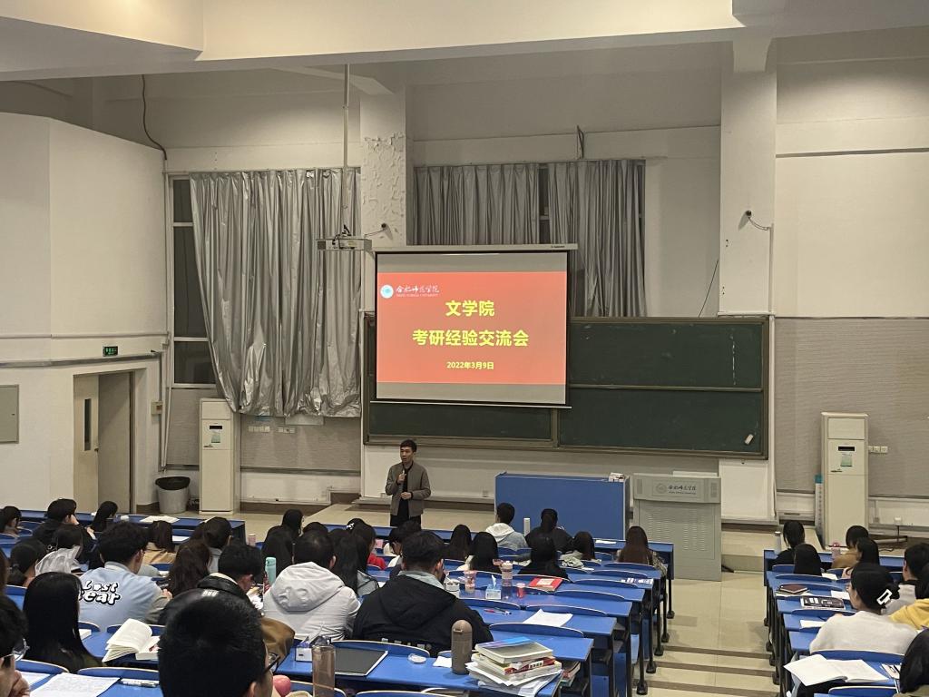 3月10日晚,太阳成集团122ccvip在锦绣校区逸夫楼西阶3教室举办2022年首场考研经验交流会。交流会邀请2021级学科教育(语文)专业9位党员硕士研究生做考研经验交流分享,2019级、2020级近300余名本科生参加。