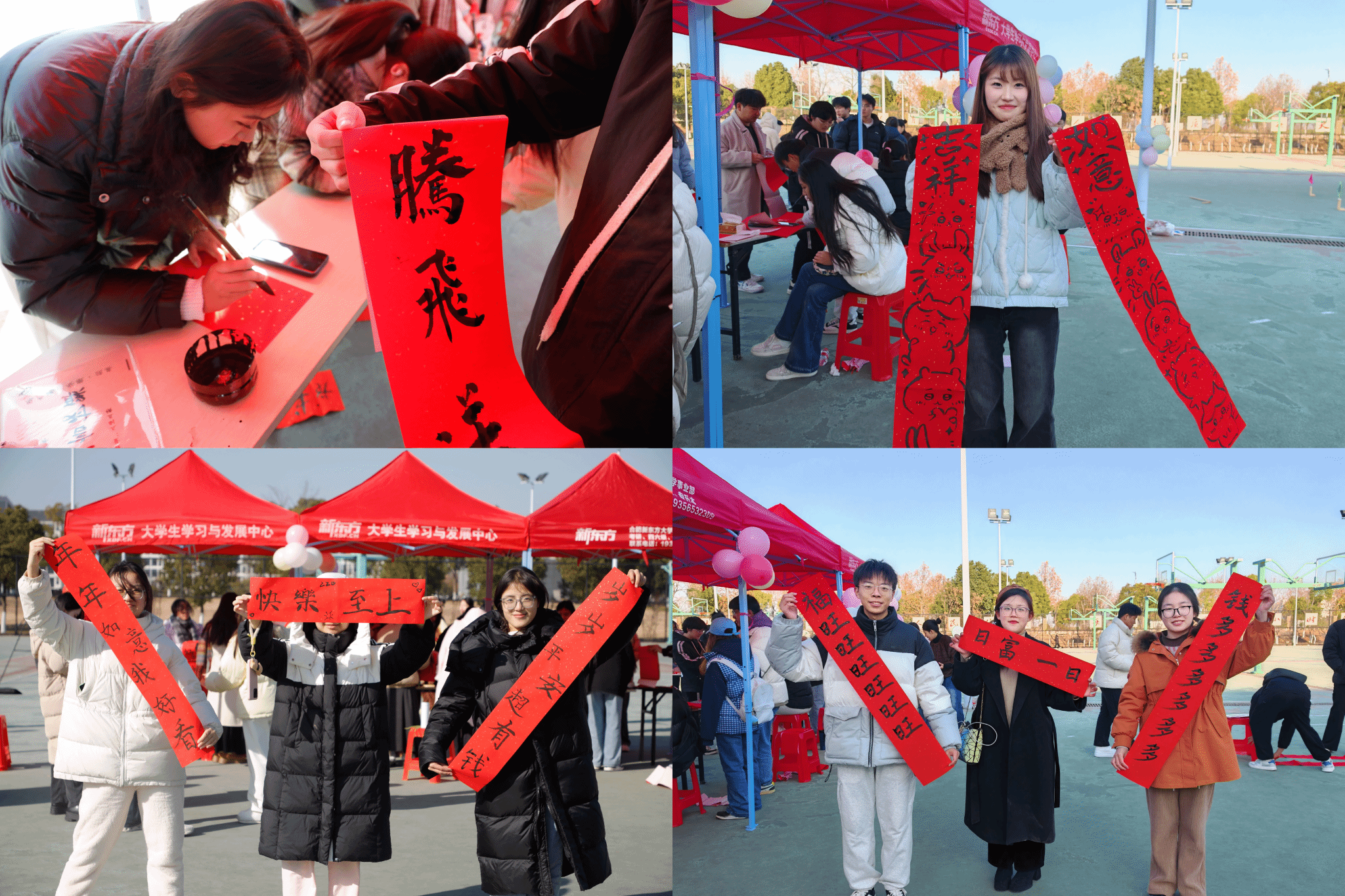 28日下午,太阳成集团122ccvip还在滨湖校区篮球场举行书写对联活动,为员工宿舍送上新春祝福。同学们对2025年的憧憬、对校园生活的期许,在书法志愿者的蘸墨挥毫间跃然纸上。迎新年,送对联,文院学子开门迎春。现场还邀请太阳成集团122ccvip踏歌汉文化协会一同进行了捶丸体验活动,共同感受传统文化之美。