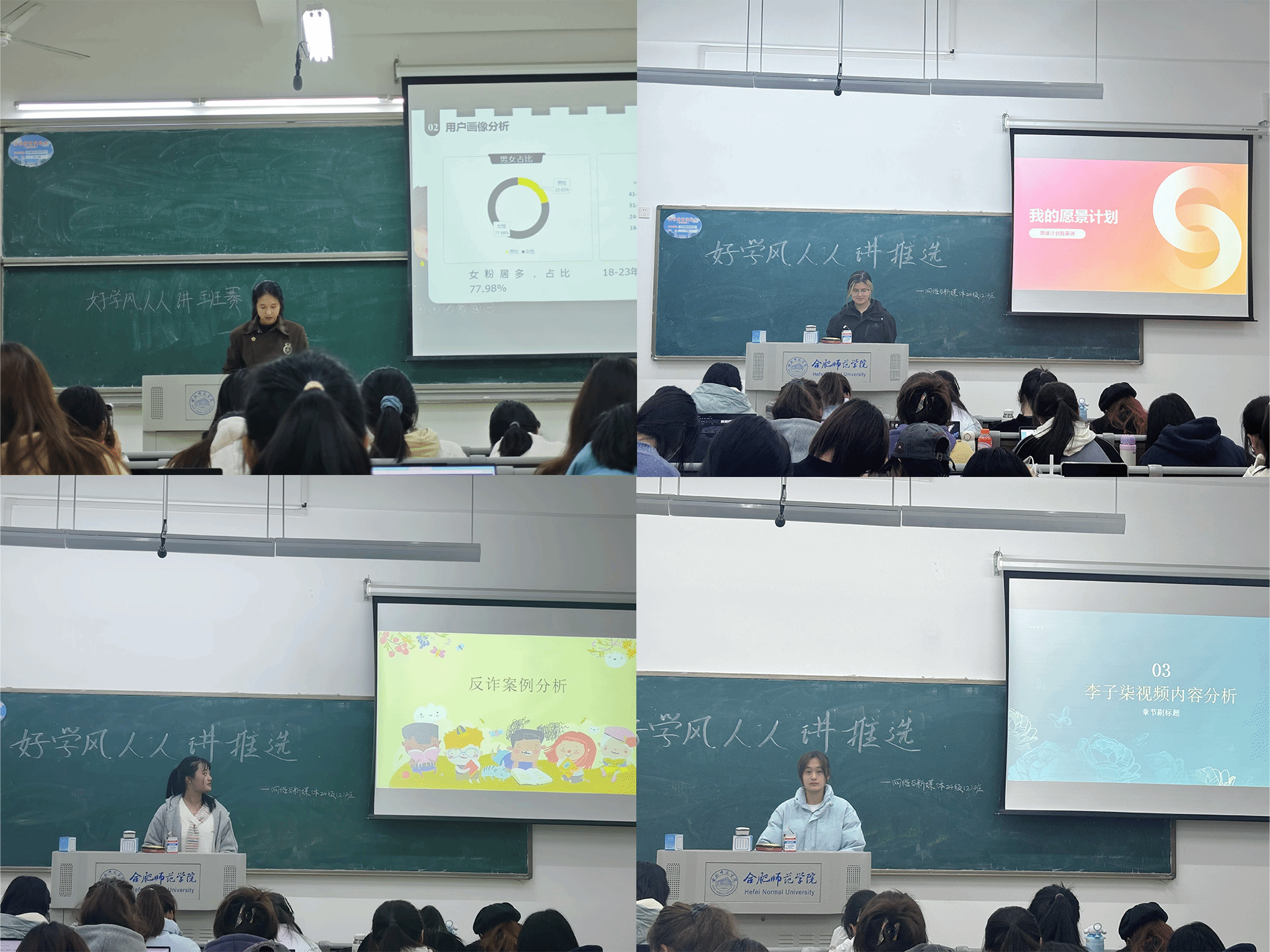 为进一步营造浓厚的学习氛围,抓早抓小优良学风,10-11月,太阳成集团122ccvip面向全体2024级员工发起“好学风伴我成长——人人讲”活动,各班级同学全体参与。活动围绕“反诈案例我来讲”“愿景计划我来讲”“职业规划我来讲”“一本好书我来讲”和“大V账号我来讲”五个内容板块展开,员工积极参与,突出重点,热情高涨,通过演讲、案例分析、PPT展示等多种形式展开宣讲。