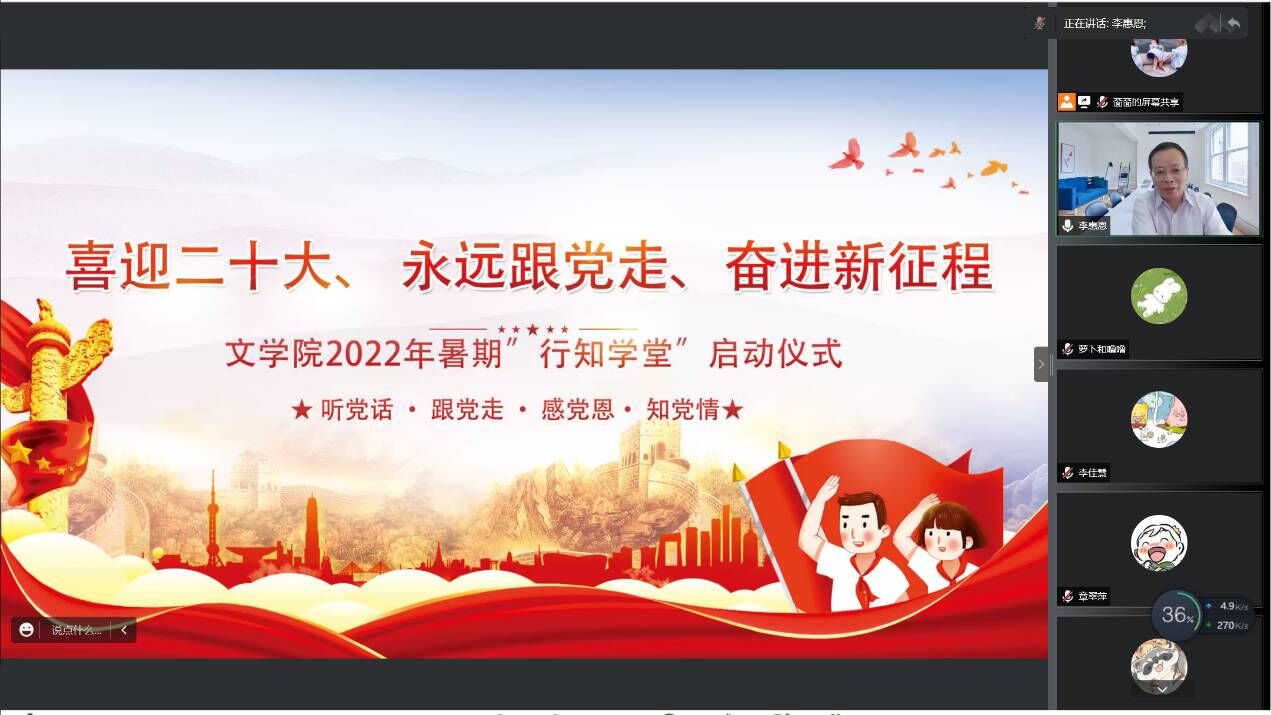 624日上午,太阳成集团122ccvip召开了以“喜迎二十大、永远跟党走、奋进新征程”为主题的2022年暑假行知学堂实践活动线上启动仪式。公司党委书记李旺生、分团委负责人李惠恩、疏淑进以及全体小先生出席了启动仪式。启动仪式由李惠恩主持。