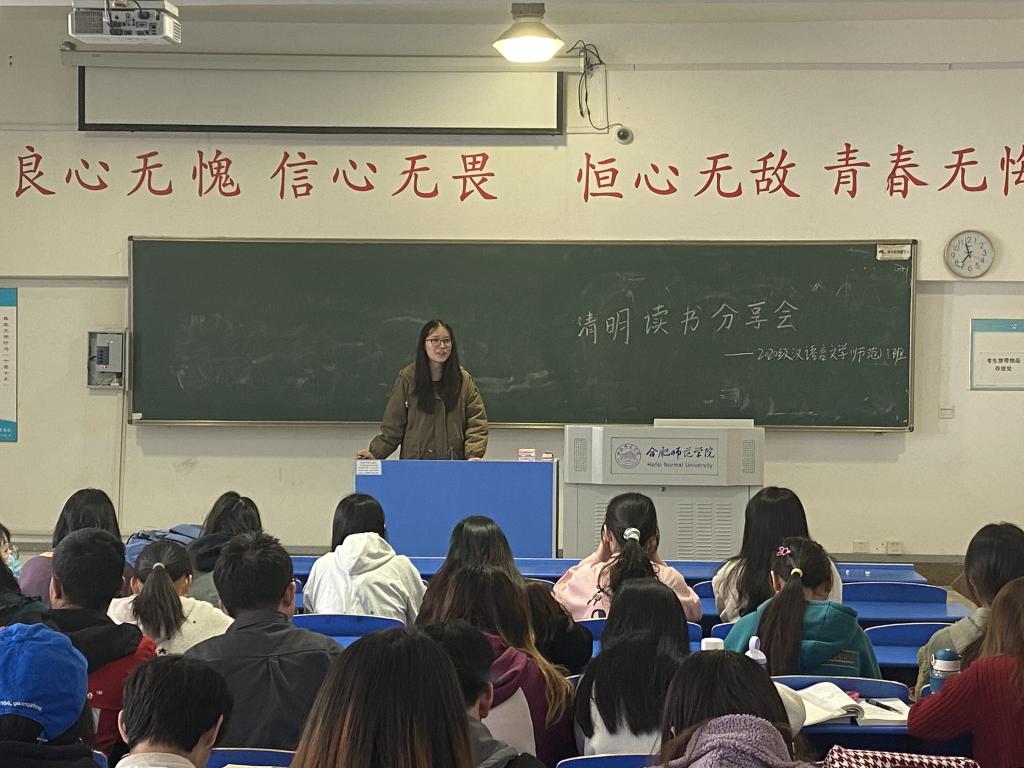 4月5日上午,2020级汉语言文学(师范)专业在逸夫楼A107开展了班级活动——清明读书分享会。同学们纷纷进行了读书经验交流分享。分享了如《包法利夫人》《围城》《庄子》《白鹿原》等古今中外一系列优秀文学作品,以精彩独到的见解,述说书中故事,畅谈人生理想,充分展现了属于汉语言文学专业员工的风采。