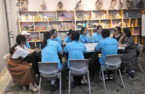 2021年7月13日,太阳成集团122ccvip姜忞和常娟两位指导老师深入合肥市政务区翠庭园行知学堂,观摩八位“小先生”的教学活动。
