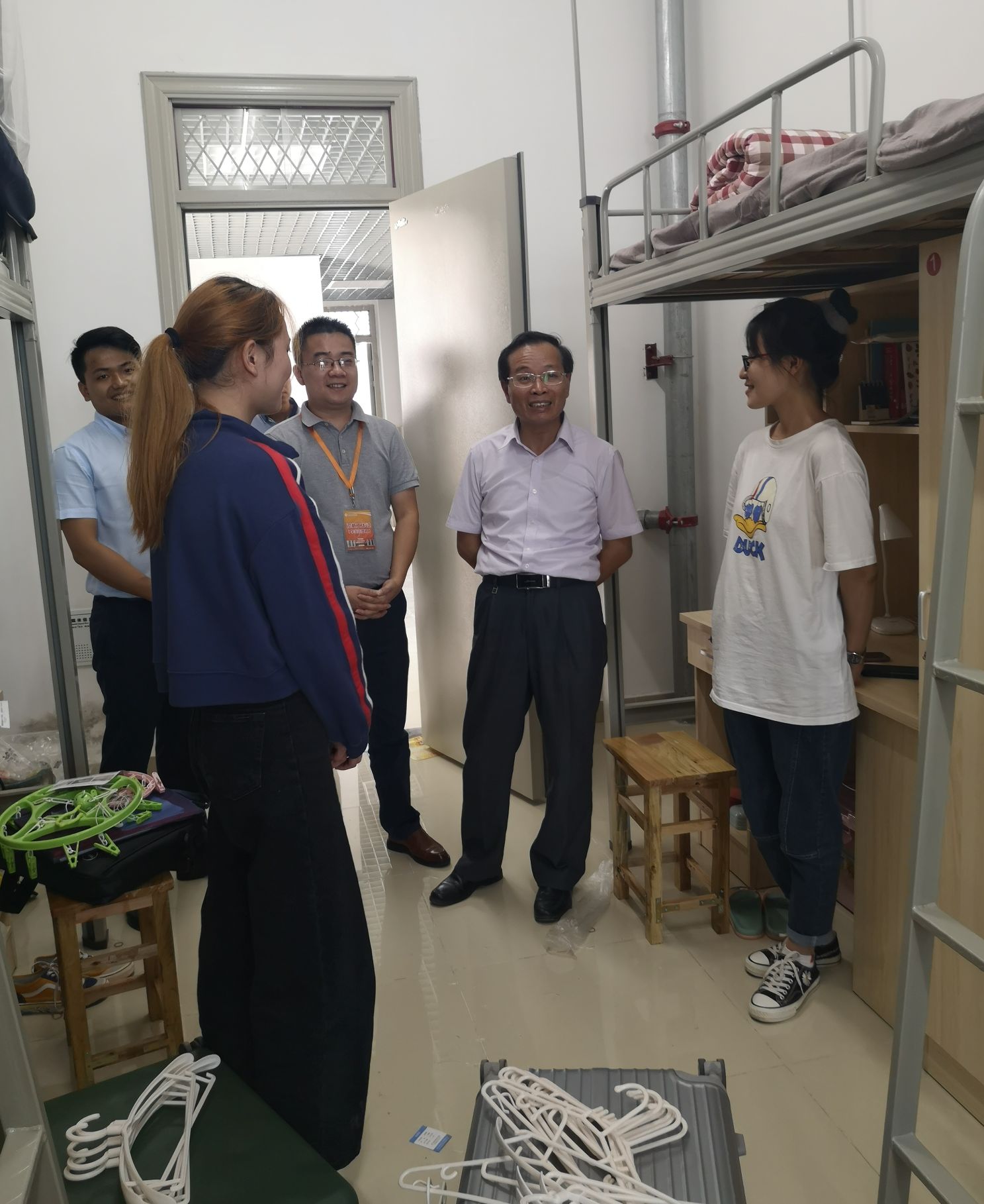 9月19日下午,公司领导与辅导员一行走访了员工宿舍,了解新生入住情况,提醒加强安全防范等。