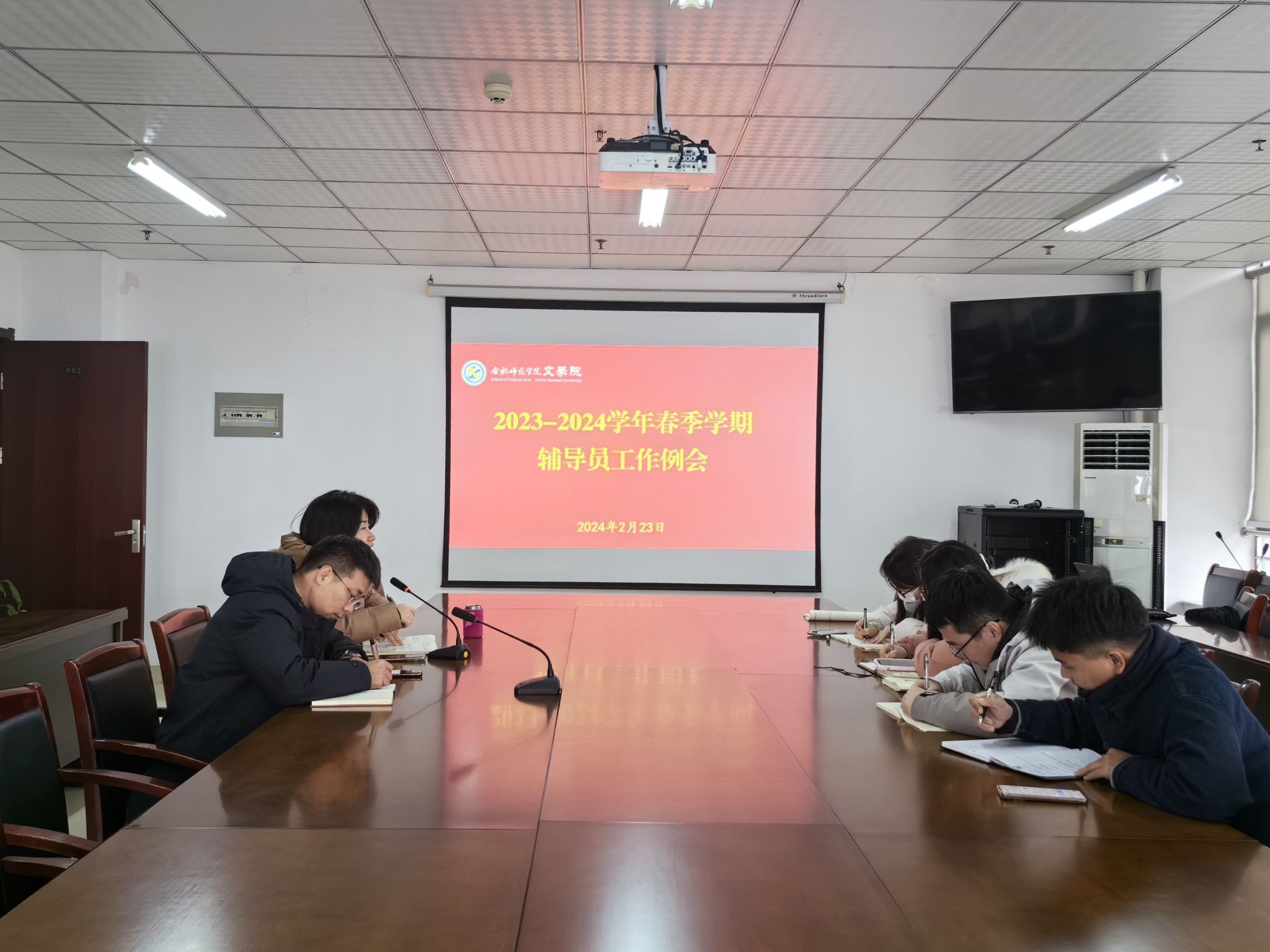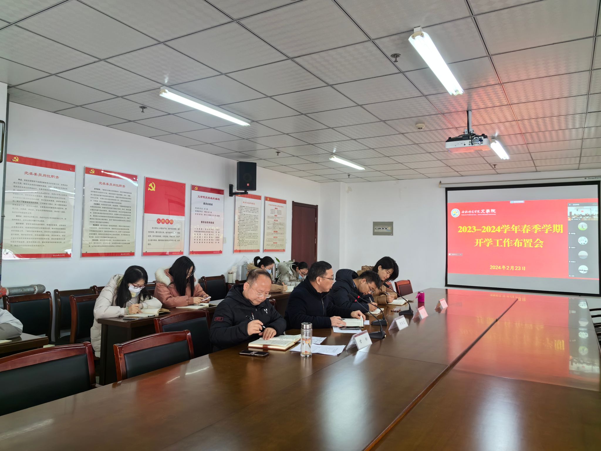为了扎实做好新学期开学准备,确保开学各项工作顺利、有序进行,2月23日上午,太阳成集团122ccvip在行知楼802室召开2023-2024学年春季学期开学工作布置会,会议以线上线下结合的方式召开,院领导班子成员、全体教职工参加会议。会议由党委书记许锃主持。