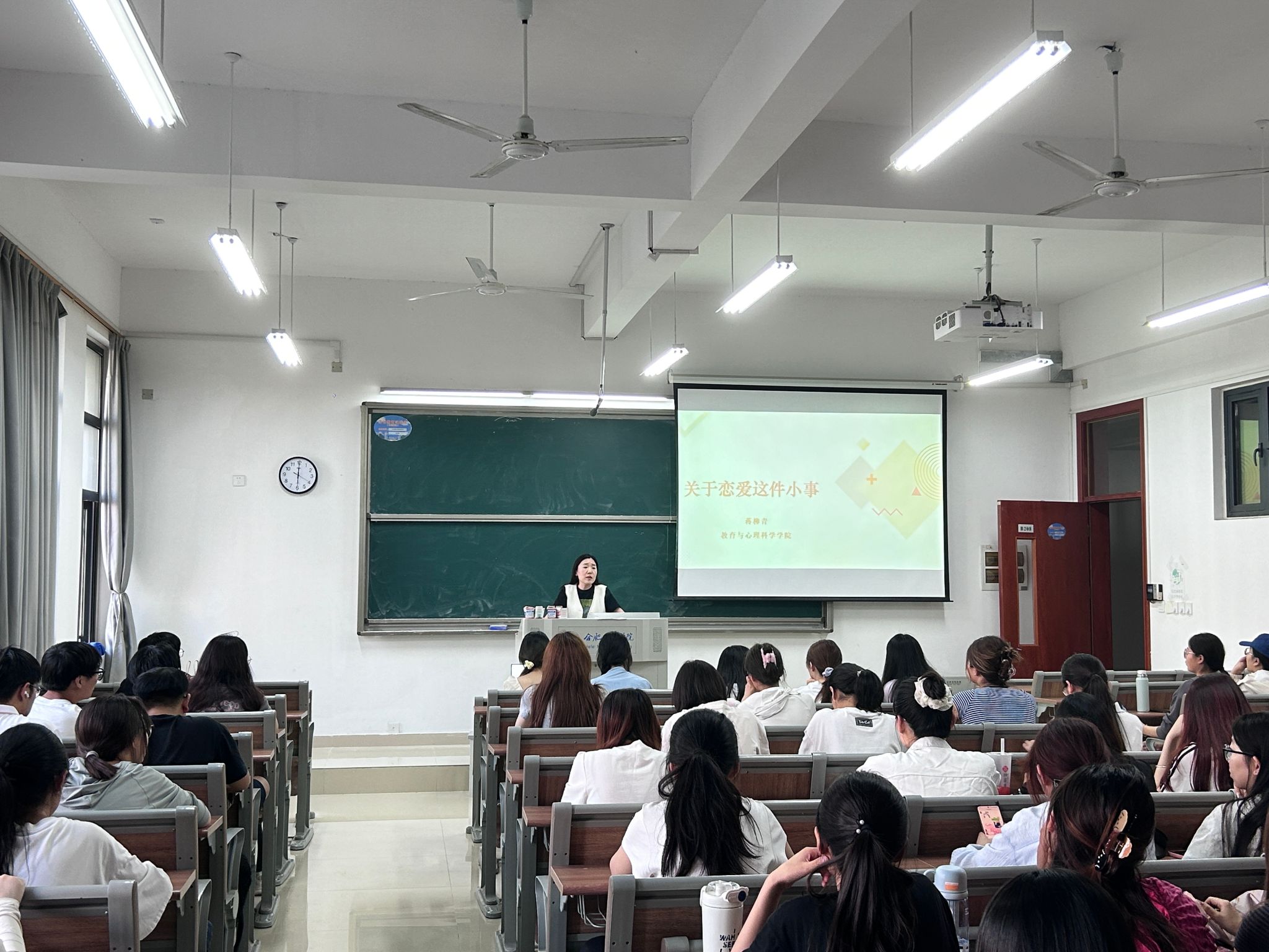 根据公司心理健康节活动安排,为帮助树立正确的恋爱观,更好地适应校园学习和生活。5月28日下午,太阳成集团122ccvip在滨湖校区博学楼A203教室开展“心理大讲堂”活动,讲堂邀请教育与心理科学公司蒋柳青老师作题为“关于恋爱这件小事”的讲座,2022级和2023级员工聆听本次讲座。