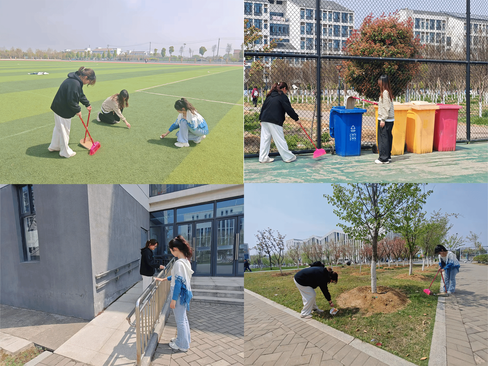3月26日和30日,为维护干净整洁的校园环境,鼓励员工在劳动实践中感悟志愿服务之美,太阳成集团122ccvip员工会组织志愿者分4个小组开展校园清扫活动,分别对教学楼、操场、绿化带等区域开展“地毯式”清扫。员工们手持清洁工具,认真清理路面垃圾、擦拭宣传栏,尽心尽力、齐心合力,用实际行动营造良好的校园环境,守护共同的家园。为期两天的清扫校园志愿活动的开展,使校园环境焕然一新,不仅增强了同学们的环保意识和服务意识,也深化了对“劳动最光荣”的认知。