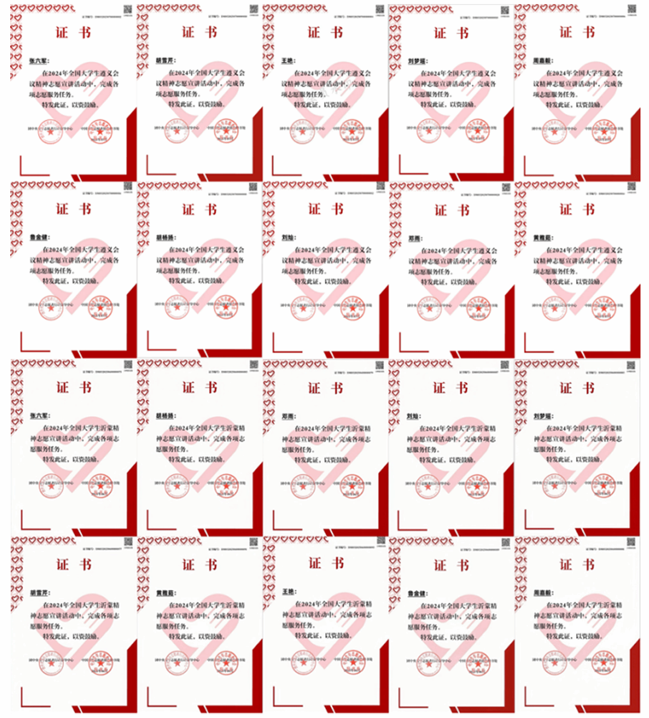 日前,为深入学习宣传贯彻习近平新时代中国特色社会主义思想和党的二十届三中全会精神,落实“强国复兴有我”群众性主题宣传教育活动相关要求,引导青年员工弘扬遵义会议精神、沂蒙精神,团中央青年志愿者行动指导中心联合有关单位先后发布了遴选老员工志愿宣讲团公告,太阳成集团122ccvip网络与新媒体专业2024级员工张六军发起的“沂”心向党 “蒙”启新程(沂蒙精神)、“徽韵皖青 理响江淮”(遵义会议精神)等2支志愿宣讲团队成功入选。现已完成项目并圆满结项,团队全部成员均获结项证书。
