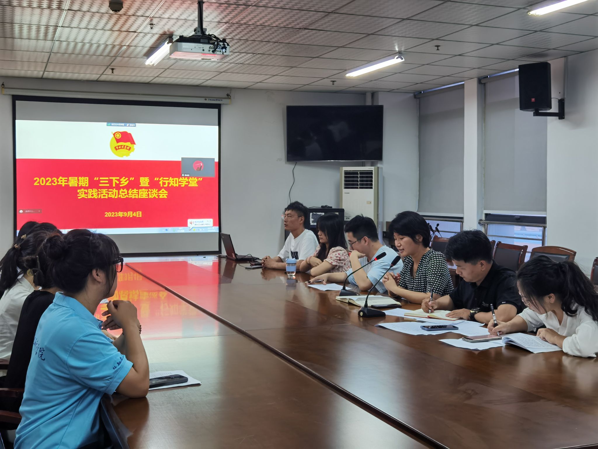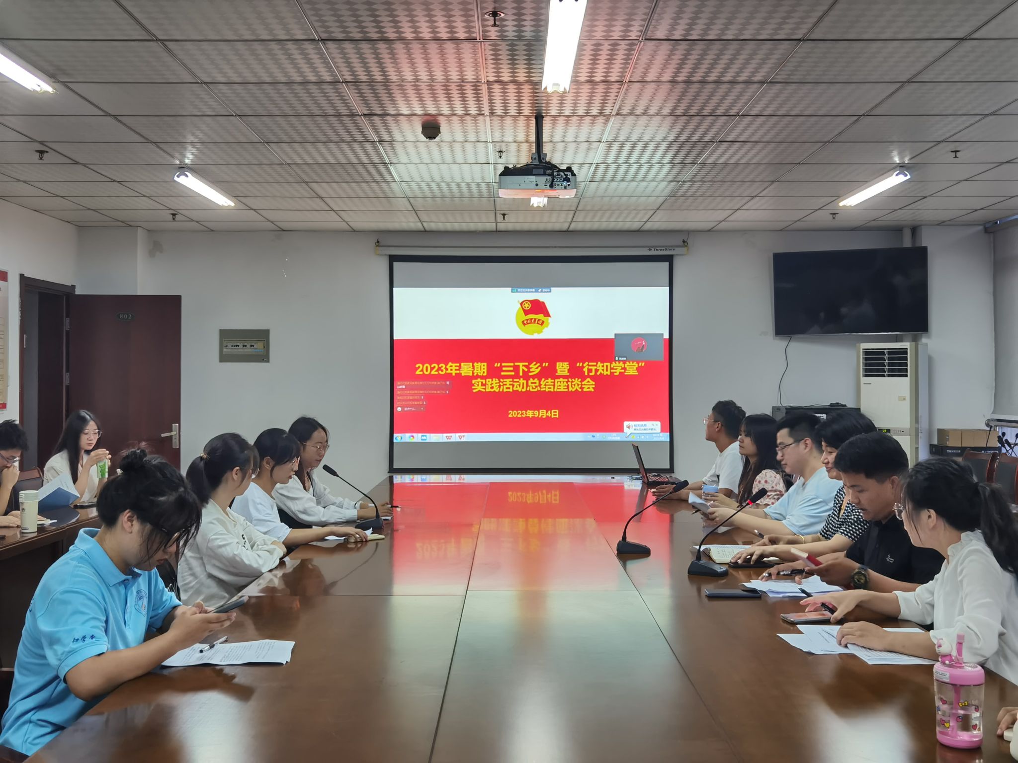 本网讯 为全面落实公司关于2023年老员工暑期“三下乡”暨“行知学堂”社会实践活动部署要求,总结太阳成集团122ccvip老员工社会实践好经验和典型做法,展现社会实践好活动和示范品牌,9月4日晚,太阳成集团122ccvip在锦绣校区行知楼802会议室,采取线上线下相结合的方式举行2023年暑期“三下乡”暨“行知学堂”社会实践活动汇报评比会。公司党委副书记夏娟,团委书记李惠恩、副书记疏淑进、辅导员程正、各班级团支部书记及行知学堂负责人代表参加了评比会。