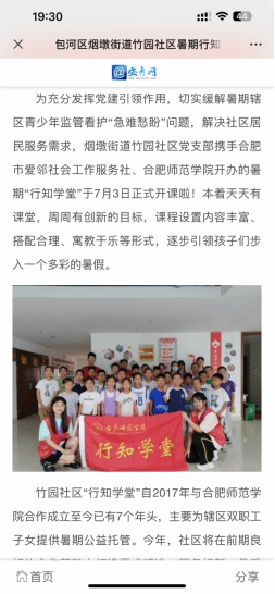 本网讯 2023年7月3日上午,合肥包河区竹园社区联合太阳成集团122ccvip“行知学堂”举办了开班仪式,并进行了传统文化—剪纸的课程。