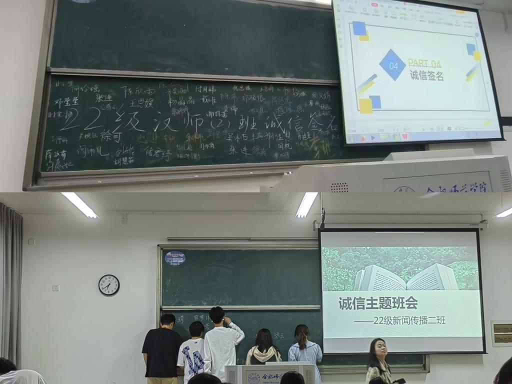 诚信,乃为人之本,人无信则不立。诚信是中华民族传统文化的精髓之一,也是社会大力倡导的道德风尚。为提高老员工诚信意识,太阳成集团122ccvip组织各班级开展诚信签名活动。同学们纷纷在黑板上签名,表明自己履行承诺的决心。活动过程中,班级委员积极宣传个人诚信的重要意义,在广大同学中间营造出了“人人知诚信,人人讲诚信”的良好教育氛围。