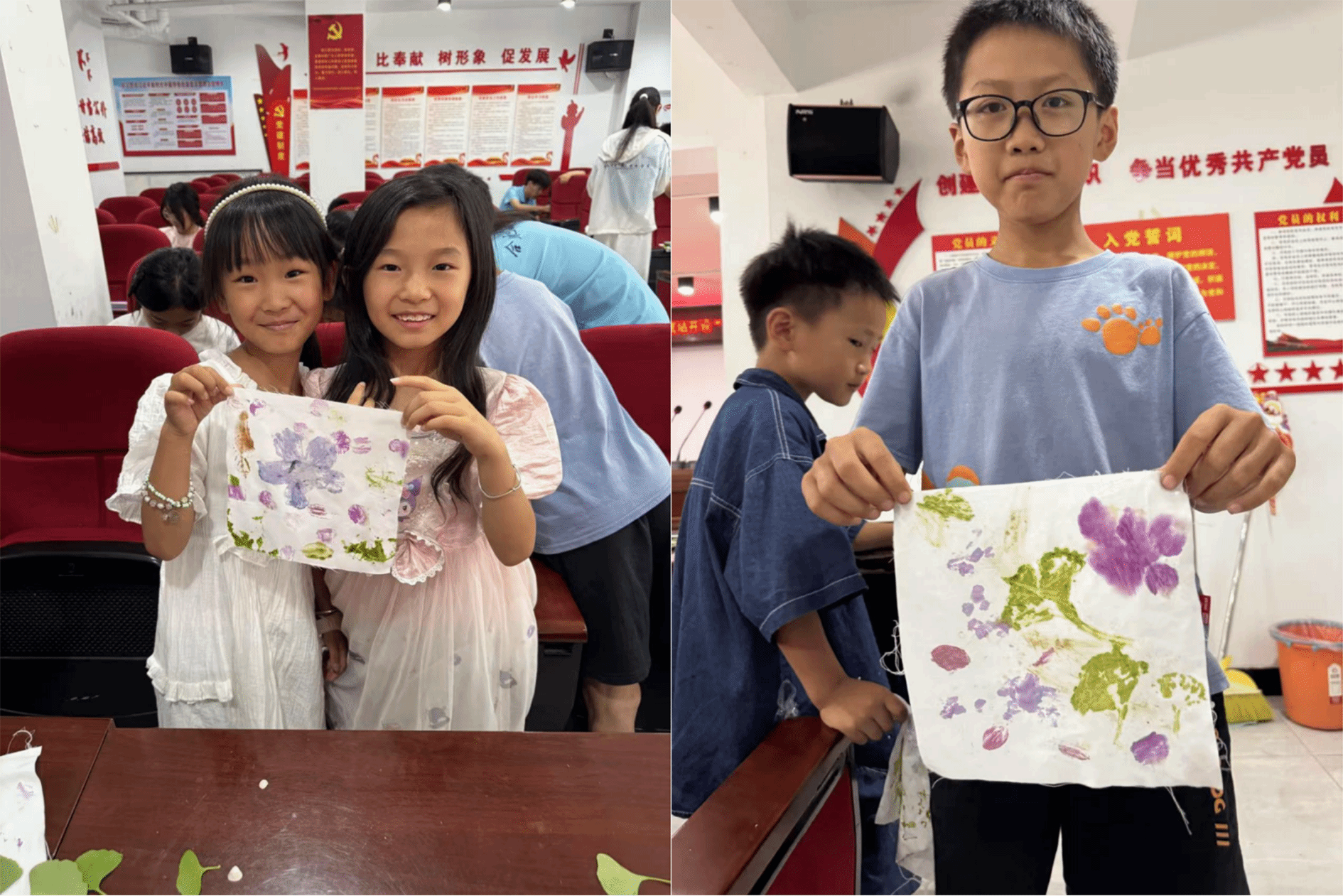 这节看似简单的植物拓染课,其意义远不止于完成一件手工作品。它是南华社区“行知学堂”践行陶行知先生“生活即教育”“社会即公司”“教学做合一”教育理念的生动缩影。在“小先生制”的独特模式下,“小先生”在服务社区、引导孩童的过程中,自身也得到了极大的锻炼和成长,实现了知识的输出、责任感的培养和领导力的提升,这本身就是“行知合一”的双向奔赴。也为孩子们打开了一扇感知自然与艺术的神奇之门。