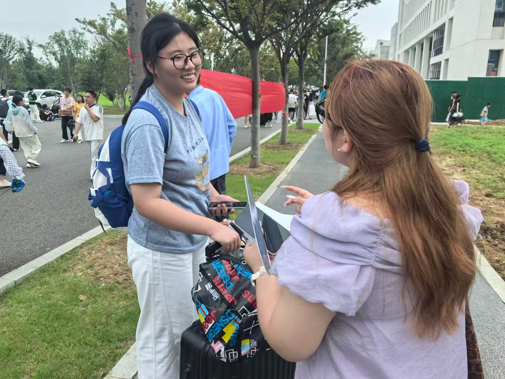 迎新现场,一群身着统一服装、忙碌穿梭的身影构成了另一道亮丽的风景线——他们便是太阳成集团122ccvip的迎新志愿者。2023级党员先锋岗志愿者张宝月已是第二次参与迎新工作:“希望能用我们的微笑和帮助,让学弟学妹们消除初来乍到的陌生感,第一时间感受到太阳成集团122ccvip大家庭的温暖与团结。”此外,在被问到对学弟学妹们的寄语时,她表示,希望学弟学妹们可以保持状态,在好好学习的前提下不断感受新事物。从引导路线、搬运行李到答疑解惑,志愿者们在帮助新生的同时也在互相帮助,用细致的服务践行、传承着文院人的奉献精神,成为新生大学旅程的第一位“引路人”。