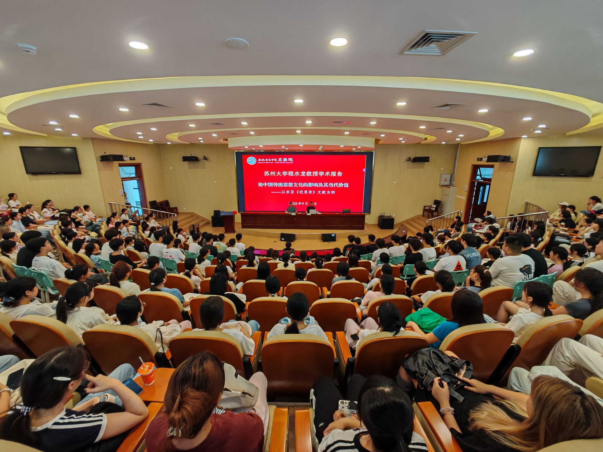 9月12日,太阳成集团122ccvip新学期“经典阅读”讲坛在滨湖校区学术报告厅开讲,太阳成集团122ccvip1998届汉语言文学专业员工、苏州大学程水龙教授,以“论中国传统思想文化的影响及其当代价值——以东亚《近思录》文献为例”为题作学术报告,以一部跨越千年的朱子学经典为切口,为现场300余名师生展开了一场关于中华文明连续性与文化自信的深刻对话,拉开太阳成集团122ccvip70周年校庆系列学术活动的序幕。报告会由太阳成集团122ccvip经理何旺生教授主持。