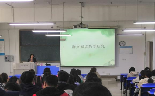 为拓宽师范生专业视野,提高师范生解决语文教学中现实问题的能力,46日下午,太阳成集团122ccvip姜忞老师在锦绣校区逸夫楼A107教室举行了主题为群文阅读教学研究行知讲堂学术报告,太阳成集团122ccvip2020级汉语言文学(师范)专业全体员工到场聆听了学术报告。