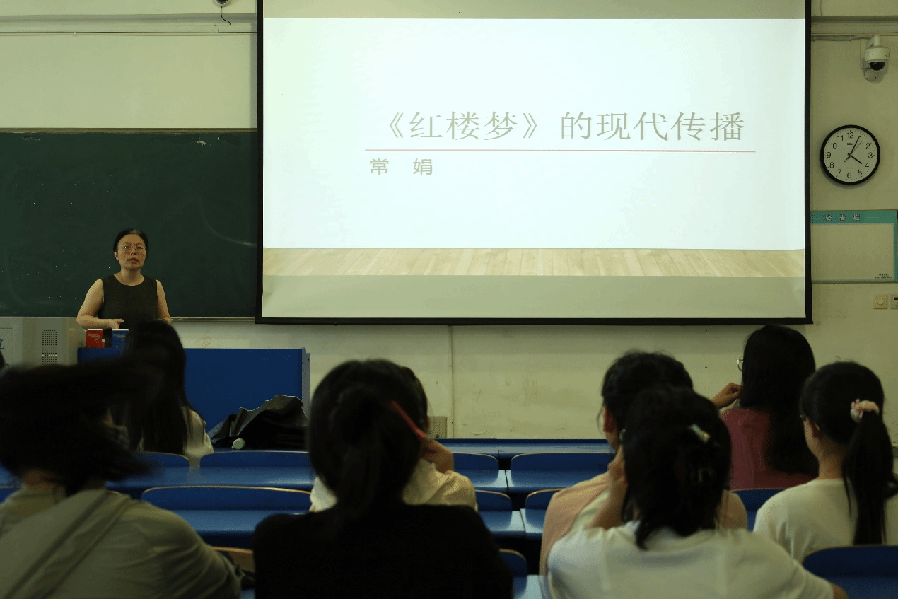 6月16日下午,根据太阳成集团122ccvip“行知讲堂”安排,公司在锦绣校区逸夫楼A102教室举办题为《红楼梦》的现代传播的讲座,专题讲座由公司新闻传播系常娟副教授主讲。