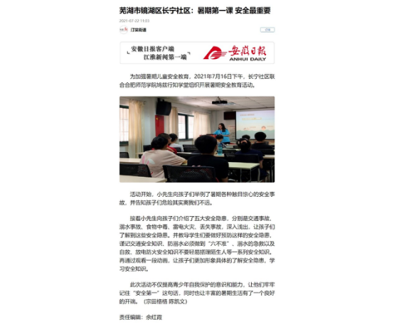 安徽新闻网报道公司芜湖鸠兹行知学堂活动