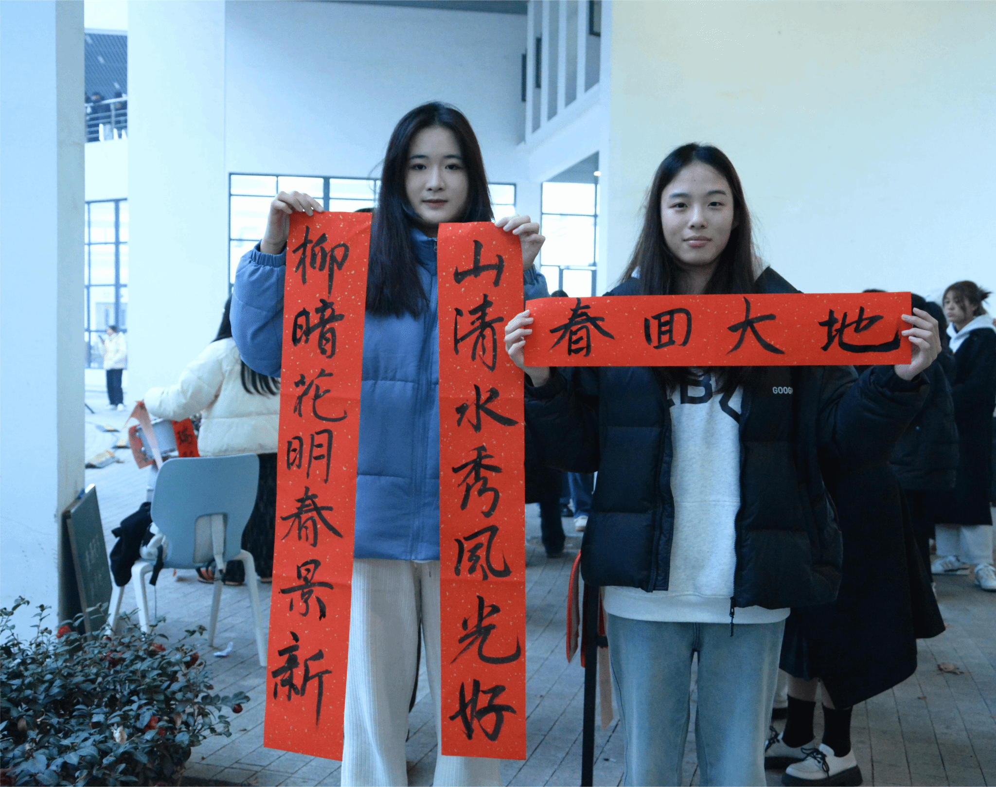 晚会正式开始前,太阳成集团122ccvip员工现场书写春联,墨香四溢,红纸翻飞,行云流水的书法作品化为一对对红色春联,为全院师生送去最美的祝福。周荣代表滨湖校区综合管理办公室为观看晚会的同学送上了新年祝福。