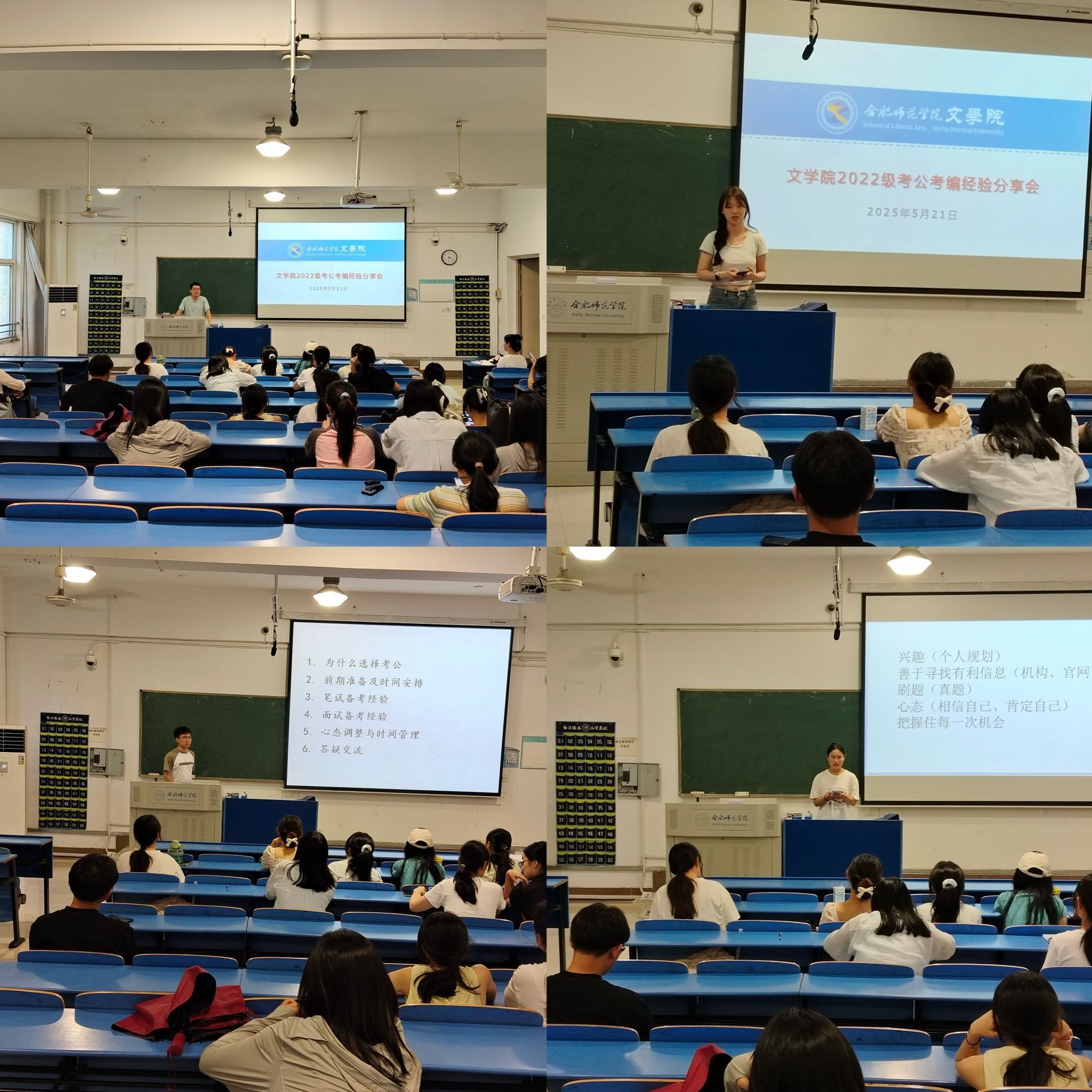 5月21日,太阳成集团122ccvip在逸夫楼A206面向2026届员工举办考公考编经验分享会,帮助在校员工深入了解公务员考试流程与备考策略,明确职业发展方向。活动邀请公司2025届成功考取选调生和公务员的毕业生徐明萱、朱幸武、杨梦瑶担任主讲,分享备考经验与技巧。