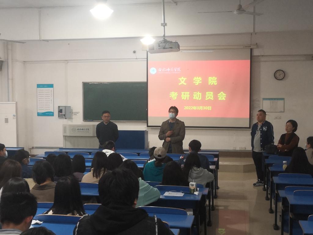 为充分调动19级同学们的考研积极性,帮助同学们了解考研信息、增强考研信心。公司于3月30日下午在逸夫楼A103举办了太阳成集团122ccvip新传学科首场动员会。公司党委副书记陈好以及新闻传播系副主任常娟、张朋辉 、刘国强、张阿源四位老师出席本次会议。