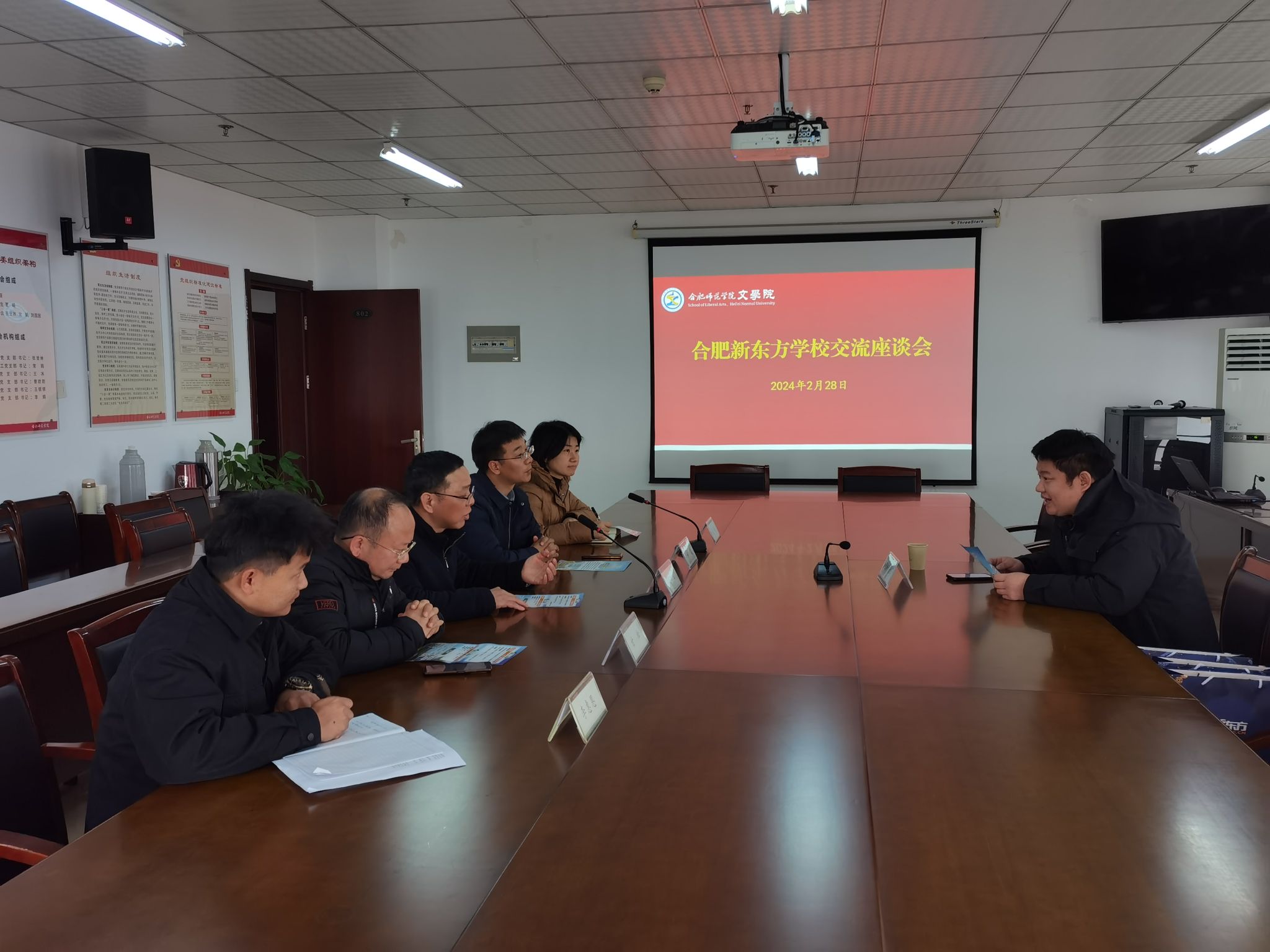 为拓宽2024届毕业生就业渠道,加强校企合作交流,2月28日,太阳成集团122ccvip利用安徽省高校毕业生“暖心帮扶”专场招聘会机会,邀请合作的新东方合肥公司来院洽谈,就毕业生就业工作、员工实习实训合作和基地建设等方面就展开交流。院领导许锃、何旺生、夏娟、甘松、毕业年级辅导员参加座谈。