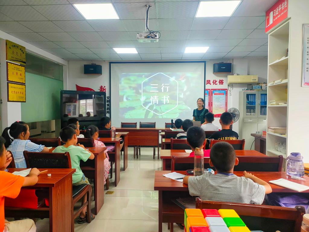 为了锻炼小学员的创意思维,源潭行知学堂特此开展“创意写作”课程。该系列课程由汉语言文学(师范)专业21级员工华青青主讲,她根据专业知识将本次创意写作课程分为三大板块,即三行情书、卡片写作和小组写作。