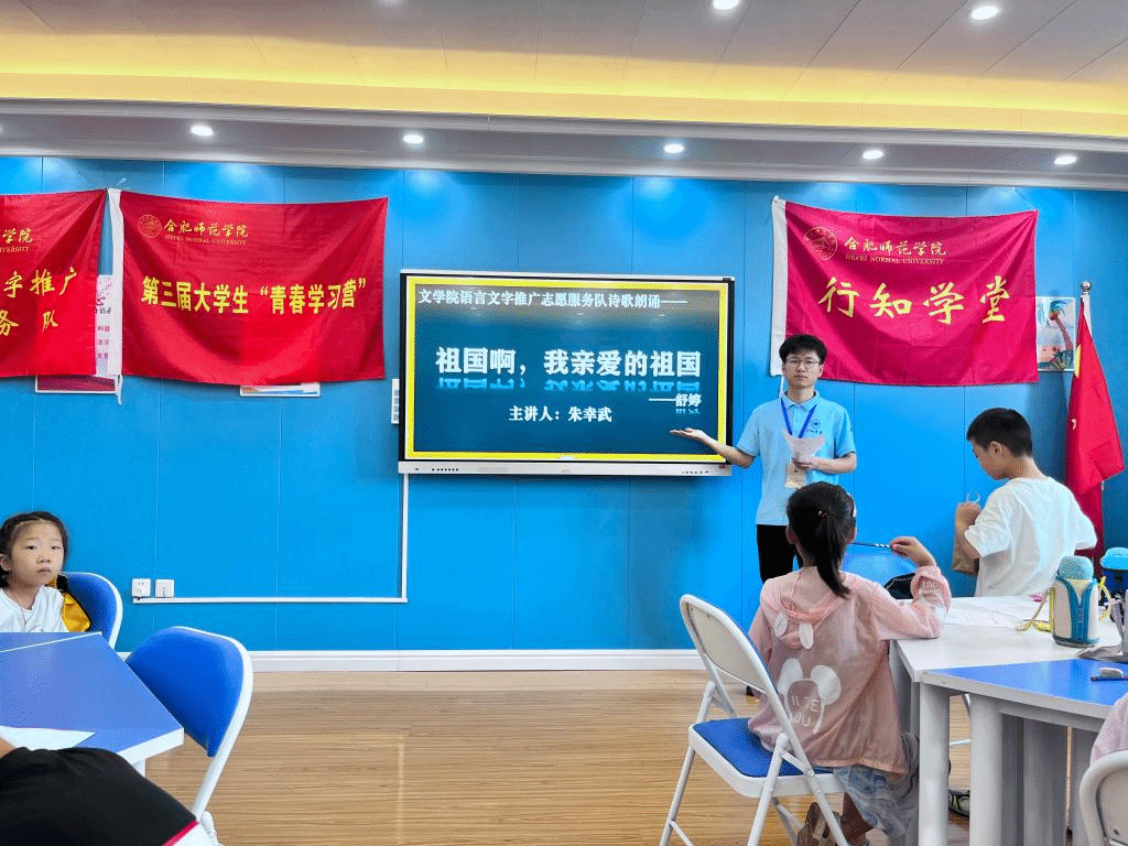 7月15日,霍山行知学堂积极响应太阳成集团122ccvip号召,将普通话推广与霍山行知学堂特色课程口语表达相结合,将语言文字推广融入课堂。