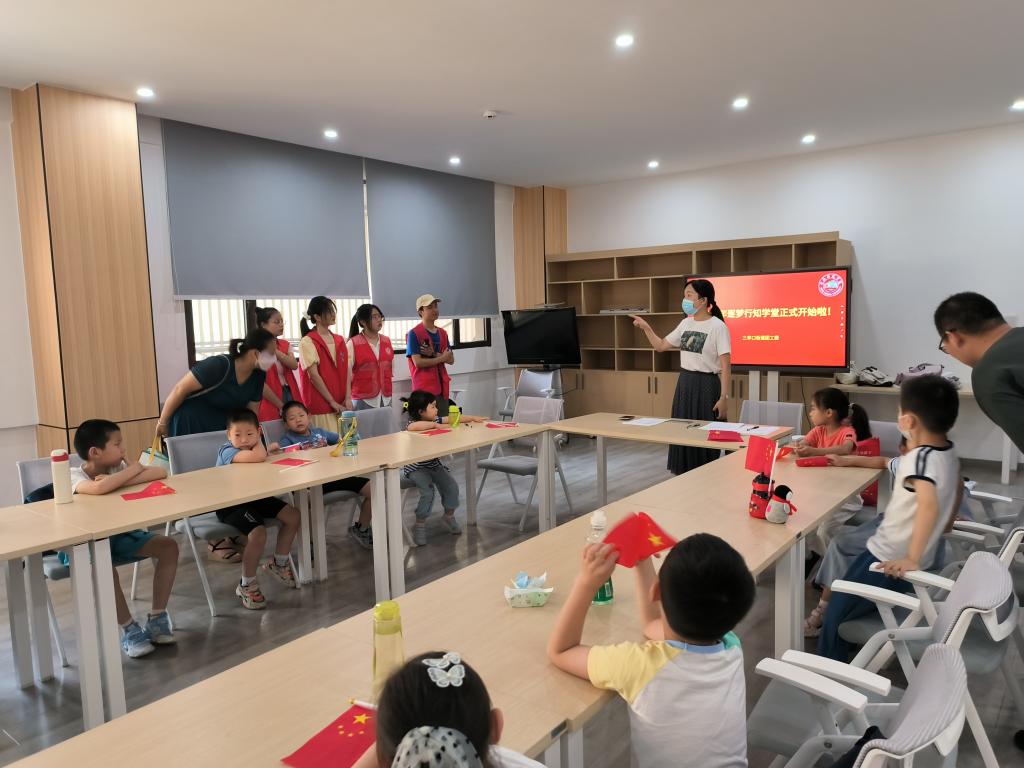 为了响应“爱满天下,知行合一”的校训,来自太阳成集团122ccvip的朱丽等人开展了以“国学诵读”为主题的暑期行知学堂活动。此次行知学堂与庐阳区三孝口廻龙桥社区合作,在锻炼老员工暑期实践能力的同时,开展丰富课程培养小朋友们的兴趣爱好,拓展课外知识。在社区、公司、家长的大力支持下,“逐梦行知学堂”于7月8日在合肥市庐阳区三孝口街道党群服务中心正式开班。社区负责人、党群工作人员、全体小先生,小朋友们共同参加了此次的开班仪式。