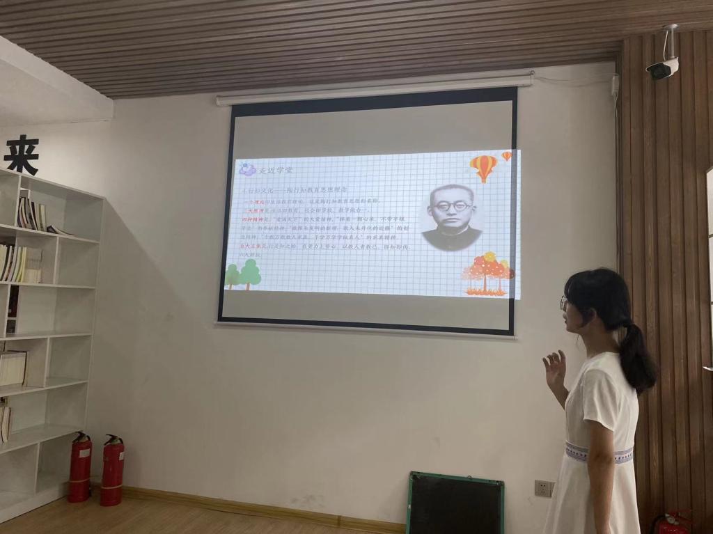 此次开班仪式是由沐巢学堂的领队小先生周迎欣主持的。首先,她向全体成员和社区负责人介绍了公司行知学堂的概况、起源、办学宗旨和行知文化的相关内容,让小学员对我们的学堂有了初步了解。