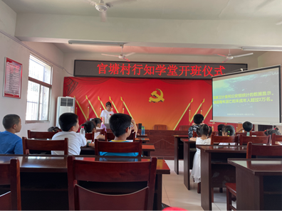 此次开班仪式是由官塘行知学堂的领队小先生——李秋倩主持的。首先,她向全体成员和社区负责人介绍了公司行知学堂的概况、起源、办学宗旨和行知精神的相关内容,让小学员对我们的学堂有了初步了解。