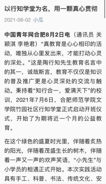 新闻链接:https://xiaoyuan.cycnet.com.cn/s?app_version=%28null%29&uid=2931079&scid=886833&time=1628082125&signature=ml3Q0RNe9oPxVZ6pJMA7EnZqXFAj9daL2XGkOKdvDynjYb5Wzg&phone_code=530959f6a2c5d4b86fe392b5b90e4edf&sign=916366d6482a2a4fd3dfdf8a61559f59#