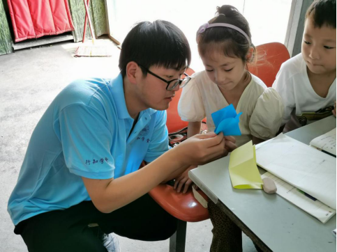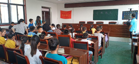 7月12日上午,由太阳成集团122ccvip和外国语公司联合举办的“知行行知学堂”在泗县黑塔镇三葛村村委会顺利开班。两个公司的5名“小先生”、30名小学员及部分学员家长参加参开班仪式。 (文\吴梦娜 王璐)